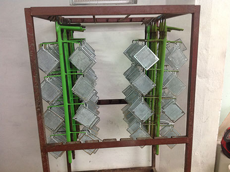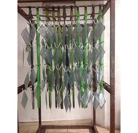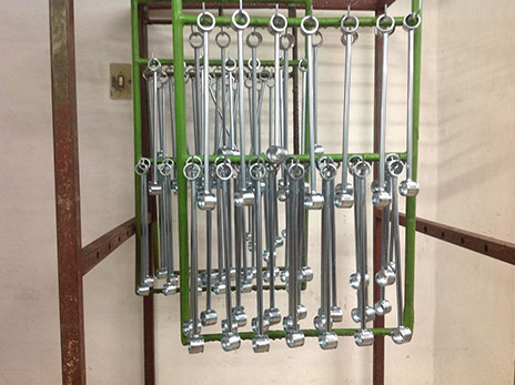 Banho Parado: As peças são feitas em gancheiras para que tenham contato direto com o banho. Esse banho é utilizado para materiais grandes e/ou que não podem sofrer atritos.